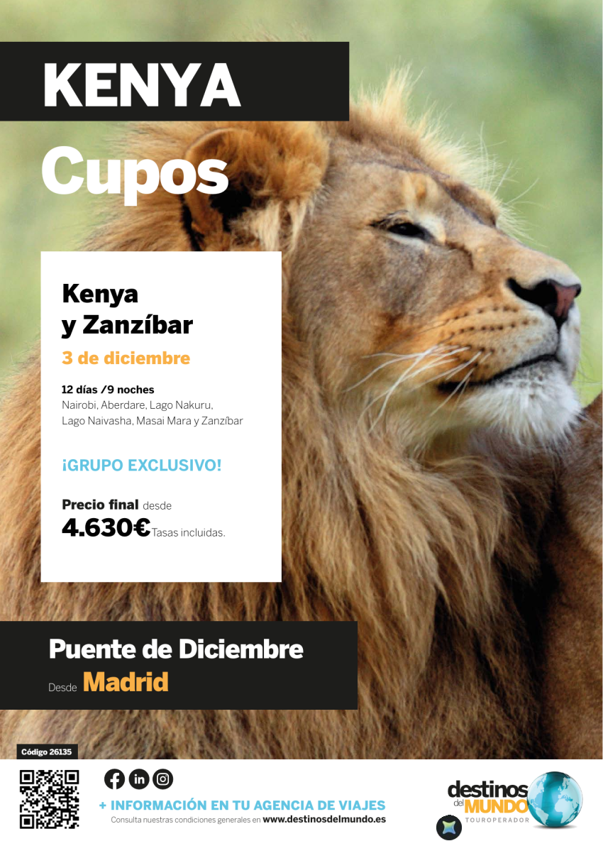 🇰🇪 🏝️🦁Kenya y Zanzíbar CUPOS 11 días / 8 noches Salida: 03 diciembre origen: Madrid desde 4.630€🇰🇪 🏝️🦁